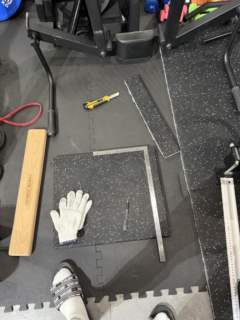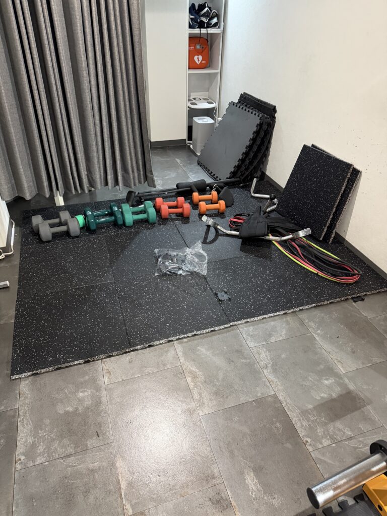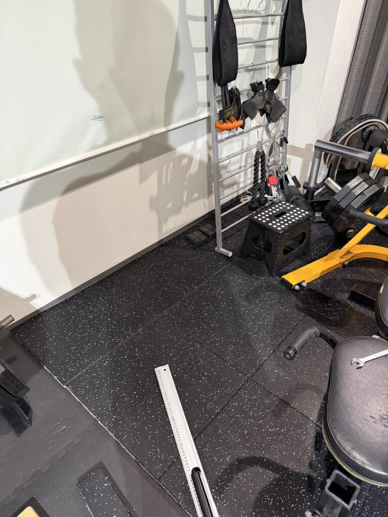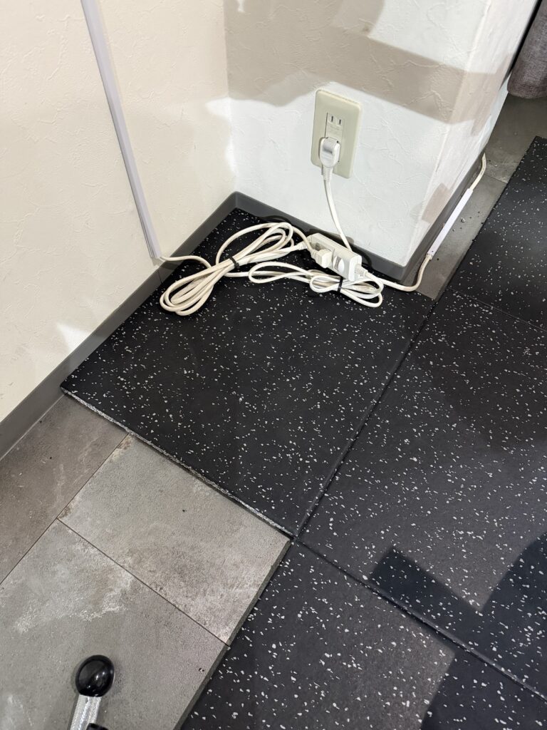 今月末のマシン入れ替えに伴い、ジムの床材を新調しました。